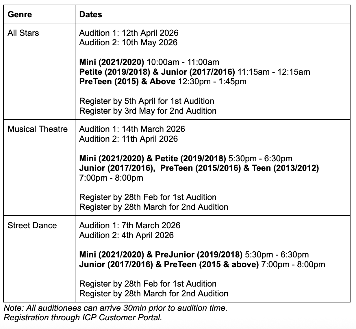 - Final Audition Opportunity: Our final audition for the prestigious All Stars Team will take place on 10 May.